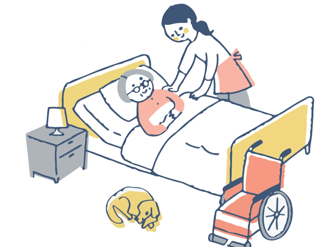 仕事を終えて帰宅です。スタッフが温かくお迎えいたします。帰宅後は、リラックスしてほっと一息つける時間が待っています。